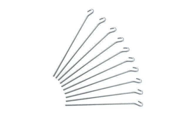 Mit offener Ăse und stumpfer Spitze fĂŒr harte Böden. Galvanisch verzinkter Stahldraht.
