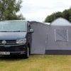 Freistehendes Busvorzelt fĂŒr Fahrzeuge mit einer Regenrinnenhöhe von 180-210 . Fenster inkl. Moskitogaze (hochrollbar / blickdicht verschlieĂbar).