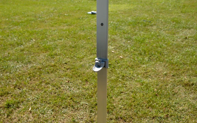 - Minutenschneller Auf- und Abbau â StĂŒtzbeine und Spannstangen werden aus der Frontleiste ausgeklappt