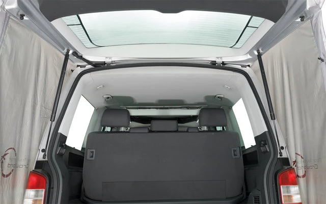 Die vielseitige Konstruktion des Heck-Vorzelts Easy Camp Crowford schafft flexibel nutzbaren Raum fĂŒr VW-Bus Camper. Es ist die ideale Wahl fĂŒr den VW T5 bzw. T6 California. Mit zwei Abspannleinen wird es sich sicher an der Heckklappe befestigt. DarĂŒber hinaus verfĂŒgt es ĂŒber eine TĂŒr mit angenehmer Durchgangshöhe, die zum Schutz vor Sonne und Regen hochgeklappt werden kann. Entworfen fĂŒr das Heck eines VW California T5/T6 Stahlstangen fĂŒr das Vordach ĂŒber der VordertĂŒr enthalten. Verdeckte LĂŒftung auf der Vorderseite Fenster mit aufrollbaren VorhĂ€ngen an beiden Seiten. Ausgestattet mit Befestigungshaken mit Klappen zum Schutz der Kanten am Heck.