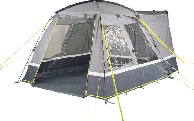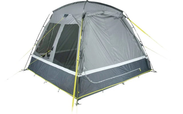 Die rechten SeitenwĂ€nde bieten ein optimales RaumgefĂŒhl. 3 DachstĂŒtzgestĂ€nge stabilisieren das Zelt. Das Vordach mit Wetterblenden schĂŒtzt vor Wind, Regen und bietet Schatten. Der fest vernĂ€hte Boden mit dem AuĂenzelt verhindert das Eindringen von Schmutz, NĂ€sse, Krabbeltieren und schĂŒtzt vor Zugluft. Die Verandafront lĂ€sst sich je nach Wetterlage bis zur Mitte oder ganz öffnen. Die Bodenwanne kann an der Front herunter geklappt werden und verhindert Stolperfallen. Gazefenster aus extra starkem, reiĂfestem 150D âSuperfineâ Moskitonetz belĂŒftet den Wohnbereich und halten Insekten aus dem Zelt fern. Die innenliegende ReiĂverschluss Fensterklappe ist einfach zu bedienen und wird variabel als Dauerventilation eingesetzt. Gaze-SeitentĂŒr aus 150D âSuperfineâ Moskitonetz fĂŒr mehr Bewegungsfreiheit und BelĂŒftung. 2 Klarsichtfolienfenster mit innenliegenden ReiĂverschluss- Fensterklappen können einfach und variabel bedient werden. Eine HochentlĂŒftung belĂŒftet das Zelt an regnerischen Tagen.