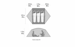 Maximaler Platz:Â Viel Bewegungsfreiheit im Kopf- und Ellenbogenbereich im gesamten Zelt, zwei groĂe Eingangsbereiche seitlich bieten Platz fĂŒr die AusrĂŒstung.