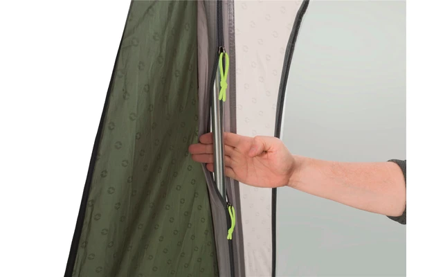 - Die zuverlĂ€ssigen und benutzerfreundlichen Ventile zum Aufblasen/Ablassen der Luft sind gut zugĂ€nglich am Ăberzelt angebracht