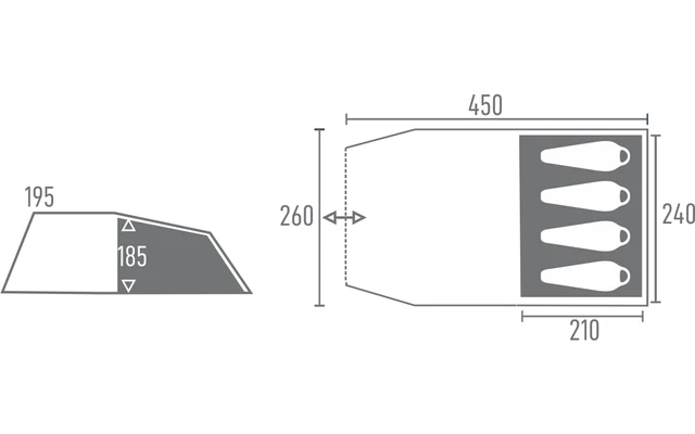 - Vordach: Der Vordereingang kann als Sonnensegel aufgestellt werden und bietet zusÀtzlichen Schutz vor Sonne und Regen