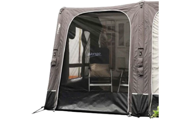 Die an der Vorderseite angebrachte NetztĂŒr sorgt fĂŒr eine natĂŒrliche Luftzirkulation im gesamten Vorzelt.